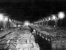 A scarcity of railroad rolling stock meant that cars arriving at the Depot needed to be unloaded quickly so they could be released for other uses. This activity was carried out 24 hours a day, 7 days a week. Also a shortage of trucks was another problem which meant that each truck leaving the Depot had to have its shipment organized for quick unloading at its destination so it could complete its convoy shipment and return to the Depot for re-loading. During the big offensives of the war during 1918, it was necessary to rush the materiel to the various field depots and combat squadrons at the front. During these periods, men frequently remained at their posts between 12 and 16 hours a day processing requisitions to get the shipments out the same day if possible.[3]