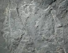 These primitive tooth-like structures lie on supragnathal plates and have a multi-cuspid appearance suggesting some degree of tooth-to-tooth occlusion occurred. Additionally, synchrotron radiation X-ray tomographic microscopy reveals that these tooth-like tubercle structures likely consist of a dentine based core and an enameloid cap common to many extant fish groups; however, they lack internal vascularization.[3] The presence of enameloid cap suggests that Romundina is either closely related to crown Gnathostomata or that this feature arose through convergent evolution and was later lost. Romundina's dental tubercles lack any apparent organization which is a more primitive feature found in Cyclostomes suggesting that organized tooth rows evolved just prior to the evolution of the first Gnathostomes.[6][2]