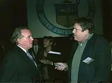 ![]() Ron May conducting an interview with his trademark tape recorder. | |