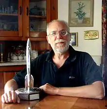 An authority on the work of astronomical artist Chesley Bonestell, his book The Art of Chesley Bonestell received a Hugo Award in 2002.[20] A feature-length documentary based on this book, "A Brush With the Future," for which he was co-producer, won the Audience Award at the Newport Beach Film Festival and Best Documentary at the San Diego Comic Con. Other books have received awards, including a Silver Award for best fiction from ForeWord magazine for Palaces & Prisons [21] and the Violet Crown Award from the Writers' League of Texas for Bradamant.[22] His Worlds Beyond series received the American Institute of Physics Award of Excellence.[23] The Grand Tour has gone through three editions, multiple printings, several translations, was a Hugo Award nominee[24] and has sold over 250,000 copies. It was also twice a Book-of-the-Month feature selection. This and other books have been selections of the Science, Quality Paperback and Science Fiction Book Clubs. His book, Digital Art, was listed on the VOYA (Voice of Youth Advocates) Nonfiction Honor List in 2009.[23] In all, he has 75 works in 142 publications in 6 languages in 16,977 libraries world-wide.[25]