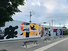 Moppett has also created a mural, THESAMEWAYBETTER/READER, made of more than 950,000 mosaic tiles for Calgary's East Village (2012). Commissioned by the Calgary Municipal Land Corporation, the mural is 110 feet long. It is the largest free-standing mosaic mural in Canada.[9]