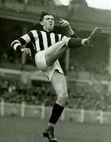 Ronald Walford Todd (23 October 1916 – 8 February 1991)[1][2] was an Australian rules footballer who played for the Collingwood Football Club in the Victorian Football League (VFL) and the Williamstown Football Club in the Victorian Football Association (VFA). Renowned for his high marking and goalkicking ability, Todd was considered as the logical successor to the legendary Gordon Coventry, but his controversial move to Williamstown, along with teammate and friend Des Fothergill, caused much bitterness at Collingwood for many years afterward. He holds the record for the most goals kicked in a VFA season (188), and his 23 goals in the 1939 VFL finals series stood as a record until it was broken by Gary Ablett Sr. in 1989.
