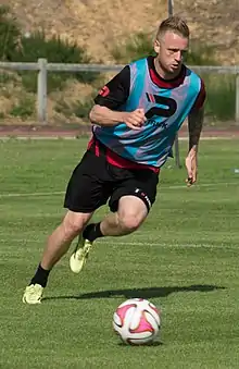 On 11 June 2014, Guingamp announced that they had bought Schwartz from Randers FC.[11] He was their third Danish signing in the summer of 2014, after Lars Jacobsen and Jonas Lössl. He made his debut for the club in the 2014 Trophée des Champions, losing 2–0 to Paris Saint-Germain. On 9 August, he played his first match in Ligue 1, replacing Claudio Beauvue in the 0–2 defeat against Saint-Étienne.[12] On 18 October, he scored his first league goal, in the 1–2 victory away against Lille.[13][14] He remained in the Guingamp first team for only one season, alternating appearances with the reserve side.[15]