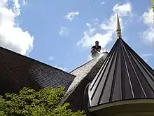 Roof cleaning is the process of removing algae,[1] mold, mildew, lichen and moss from roofs.[2] Also cleaning oxidation on metal roofs. Cleaning can extend the duration of a roof's ability to function.[2] Algae and other types of build-up often form on the north and west parts of roofs that are shaded or receive less sun, and can reduce a roof's life expectancy.[2] The presence of soot, dirt, or biomass can affect how much sunlight is absorbed by a roof and thus the amount of heat a building absorbs.[3]