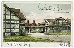 Maria Longworth Nichols Storer, daughter of wealthy Joseph Longworth, founded Rookwood Pottery in 1880 after being inspired by what she saw at the Centennial Exhibition in Philadelphia, including Japanese and French ceramics. The first Rookwood Pottery was located in a renovated school house on Eastern Avenue which had been purchased by Maria's father at a sheriff's sale in March 1880. Storer named it Rookwood, after her father's country estate near the city in Walnut Hills.[2] The first ware came from the kiln on Thanksgiving Day of that year. Through years of experimentation with glazes and kiln temperatures, Rookwood pottery became a popular American art pottery, designed to be decorative as well as useful.[3]