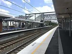 Rooty Hill station opened on 23 December 1861 as the terminus of the Main Western line when it was extended from Blacktown.[2] On 1 May 1862, the line was extended to St Marys. The station was rebuilt in the 1940s.[3]