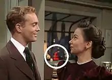 The walls of the set were on rollers and could silently be moved out of the way to make way for the camera and then replaced when they were to come back into the shot. Prop men constantly had to move the furniture and other props out of the way of the large Technicolor camera, and then ensure they were replaced in the correct location. A team of soundmen and camera operators kept the camera and microphones in constant motion, as the actors kept to a carefully choreographed set of cues.[4]