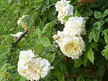 Several sports of 'Cécile Brünner' were introduced, including climbing forms ('Mlle Cécile Brünner Cl.' discovered by Franz P. Hosp of Riverside, California in 1894 and 'Cécile Brünner Cl.' discovered by Richard Ardagh in Australia in 1904), a dwarf white-flowered form ('White Cécile Brünner', introduced by Fraque in 1909[1]), and deeper pink variants (e.g. 'Mme Jules Thibaud'). The climbing sports normally grow 6 m tall and 3 m wide, but can reach a height of up to 10 m. Their flowers strongly resemble those of 'Cécile Brünner', and appear in a single flush in early summer with a few scattered later blooms.[2] The climber tolerates half shade and can develop some globose, orange hips.[3]