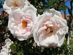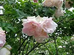 Rosa 'New Dawn' is a light pink modern climbing rose cultivar, discovered by Somerset Rose Nursery in New Jersey in 1930. The cultivar is a sport (genetic mutation) of Rosa 'Dr. W. Van Fleet'. 'New Dawn' was the first plant to be patented.[1] It was patented by H.F. Rosenberg in 1931.[2] 'New Dawn' was voted the most popular rose in the world at the 11th World Convention of Rose Societies in 1997.[3] It is also recognized worldwide as one of the best of the repeating climbing roses.[4] 'New Dawn' is an Earth-Kind rose.[5]
