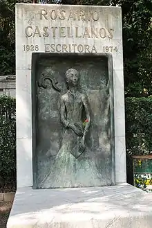She married Ricardo Guerra Tejada, a professor of philosophy, in 1958. The birth in 1961 of their son Gabriel Guerra Castellanos (now a political scientist) was an important moment in Castellanos’ life; prior to his birth, she suffered from depression after several miscarriages.[2] However, she and Guerra divorced after thirteen years of marriage, Guerra having been unfaithful to Castellanos. Her own personal life was marked by her difficult marriage and continuous depression, but she dedicated a large part of her work and energy to defending women's rights, for which she is remembered as a symbol of Latin American feminism.[3][4]