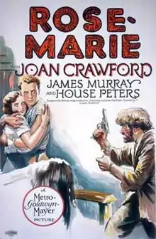 Rose-Marie is a 1928 American silent drama film directed by Lucien Hubbard. It was the first of three Metro-Goldwyn-Mayer adaptations of the 1924 operetta Broadway musical Rose-Marie.[1] The best-known film adaptation starring Nelson Eddy and Jeanette MacDonald was released in 1936; another film was released in 1954. All three versions are set in the Canadian wilderness.