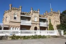 Fernleigh Castle was built in 1892,[9] incorporating part of a sandstone cottage that dated back to 1874. Aptly named, it resembles a castle with its turrets, castellated towers and square Norman tower. Its sandstone structure contains thirty rooms and a number of stained-glass windows. Fernleigh Castle is on the (now defunct) Register of the National Estate.[9][10]