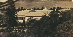 Rose Bay Cottage and also known as Salisbury Court, located in Salisbury Road, was built in 1834 by the important colonial architect, John Verge, for James Holt who, at the time, managed the 'Cooper Estate'. When built, it was the only house on the 'Estate', with the possible exception of Henrietta Villa, Captain Piper's previous home on Point Piper. The house was built as a single-storey residence of about 225 square metres (2,420 sq ft) with a verandah, over a similar sized stone cellar. Adjacent to it was an earlier structure (c. 1820s) which was apparently adopted as a kitchen. The house was significantly enlarged by sympathetic additions between 1837 and 1850 and the kitchen wing was joined to the main house forming a courtyard. By the end of this period the house had more than doubled in size. From 1861 until 1911, the house was usually known as Rose Bay Lodge; it has also been known as Salisbury Court. It was surrounded by extensive gardens embellished by five working fountains fed from a water source above on the slopes of Bellevue Hill which later fed Woollahra House, built in 1883 on Point Piper. One of the fountains still remains. Prominent occupiers of the house included Sir Daniel Cooper, Walter Lamb and John Hay – they were all noted businessmen and parliamentarians. In 1911, the property, then of 1.6 hectares (4 acres), was sub-divided and surrounded by other houses. During the next fifty years the old house suffered extensive unsympathetic additions including a second storey over the original Verge cottage which converted the house to twelve flats. It has subsequently been restored according to strict conservation standards and the unsympathetic additions removed. The house is listed on the New South Wales State Heritage Register.[8]