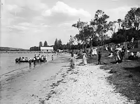 In 1902 a reserve named in honour of Sir William Lyne was reclaimed from tidal sand flats at Rose Bay. In 1904 harbour baths were built in a design by the architect Thomas Tidswell.[15] The baths have since been removed.