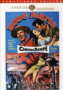 Rose Marie is a 1954 American musical western film adaptation of the 1924 operetta of the same name, the third to be filmed by Metro-Goldwyn-Mayer, following a 1928 silent movie and the best-known of the three, the 1936 Jeanette MacDonald-Nelson Eddy version. It is directed by Mervyn LeRoy and stars Ann Blyth, Howard Keel and Fernando Lamas. This version is filmed in the Canadian Rockies in CinemaScope. It was MGM's first US produced film in the new widescreen medium (having been preceded by the British-made Knights of the Round Table), and the first movie musical of any studio to be released in this format. It was part of a revival of large-budget operetta films produced in the mid-1950s.