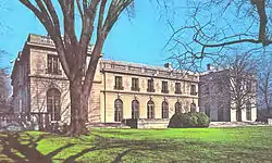 In 1920, Horace Dodge died, leaving his fortune entirely to his widow, Anna. She continued to live at Rose Terrace, but was reportedly unhappy and lonely.[3] In 1926, she married actor Hugh Dillman, and the couple decided to build a completely new mansion. They purchased the adjacent Country Club of Detroit and razed both the clubhouse and the original Rose Terrace in 1930.[4][5] Anna and Hugh spent two years in Europe, advised by prominent art dealer Joseph Duveen, collecting art, material, and inspiration for their new mansion. They hired architect Horace Trumbauer of Philadelphia to design the new mansion and the George A. Fuller Company of New York City to supervise construction,[3] which began in 1931.[6] The mansion was completed in 1934 at a cost of $4 million (equivalent to $81 million in 2021).[7]