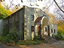 By 1910, however, craft production had faded and the community had become essentially a commuter suburb of Philadelphia, using the nearby Moylan - Rose Valley Station.[10] The buildings designed or renovated by Price during this period may be Rose Valley's major achievement. According to George E. Thomas, "Rose Valley is of exceptional importance, a major American architectural landmark."[8]: 90