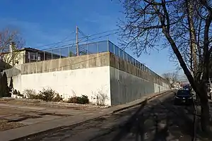 Previously, south of the station at Hylan Boulevard, there was an overpass, that has been filled in since the line was abandoned. The Virginia Avenue trestle was demolished in 1999.[1]