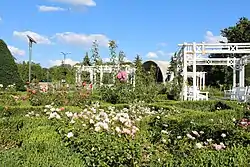 The park was established and opened in 1891 on the occasion of the Agro-Industrial Exhibition in Southern Hungary.[5] The floral arrangements were made by gardeners Wilhelm Mühle, Franz Niemetz and Benő Agátsy and were also visited by Emperor Franz Joseph. The park bore the emperor's name, but after World War I it was renamed Rosarium.[3] The landscaping of the park started in 1929 by landscapers Árpád Mühle, Wilhelm Mühle's son, and Mihai Demetrovici, the head of the horticulture service in that period. The plan for the future Roses Park was presented on 13 May 1929, at a national congress of rose growers in Romania.[6] The plan was drawn up by Árpád Mühle in the English style, with wide alleys, wooden canopies and round flower beds. The park was arranged between 1929–1934, when over 1,200 species and varieties of roses were planted here.[5] The park, initially with an area of 25,170 m2, was maintained until 1938 with the help of the military personnel of the garrison, under the command of Ion Sâmboteanu. After 1938 the park came under the administration of the city.[5]