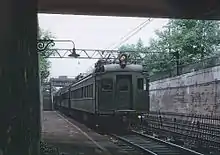The station continued receiving major service over the next five decades, but by 1966, fewer trains stopped at the station, with limited daily service to the station past the 4:33 p.m. train from Hoboken Terminal.[13] Six years later, on June 24, 1972, the Erie–Lackawanna Railroad, who now maintained the station, announced further cutbacks on station service, axing twenty-three train stops at Roseville Avenue for both directions of service. The changes were made as part of major commuter service appropriations and the lack of patronage at the station. From that point, Roseville Avenue went from 37 westbound trains to 14, while eastbound was cut from 37 to 16. Service on Saturdays were cut to flag stops only, while the station received no Sunday service at all.[14] On April 1, 1976, the Erie–Lackawanna Railroad became defunct, and merged into Consolidated Rail Corporation (Conrail), with service sponsored by the New Jersey Department of Transportation.[6]