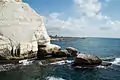 Rosh HaNikra or Hanikra (Hebrew: ראש הנקרה, lit. "Head of the Grotto"; Arabic: رأس الناقورة, Ras an-Nakura) is a geologic formation on the border between Israel and Lebanon, located on the coast of the Mediterranean Sea, in the Western Galilee. It is a white chalk cliff face which opens up into spectacular grottos.