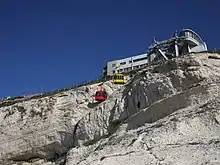 The Rosh HaNikra cable car is a cable car serving tourists wishing to visit the grottoes. The cable car is situated very close to the Lebanese border. The site is popular with tourists, and is one of the facilities available for tourists in Kibbutz Rosh HaNikra. The cable car was manufactured by Austrian manufacturer Doppelmayr Garaventa Group, and claims to be the steepest cable car in the world, ascending at a gradient of 60 degrees. Although its lower base station is located on the sea, the cable car is occasionally affected by stormy weather. The Israeli Sign Language sign for Rosh HaNikra derives from this cable car, as it emulates its motion.[12]