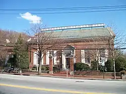 Roslyn Savings Bank Building is a historic commercial building located at Roslyn in Nassau County, New York. It was originally built on the site of the former Roslyn Hotel[2] in 1932, with additions dated to 1963 and 1980. The original structure consists of a one-story banking hall with a gable roof, with a two-story flat roofed office block in a Georgian Revival style. The original front facade is five bays wide with a center entrance and features an elaborate, pedimented stone surround.[3]