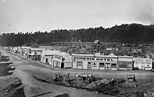 A branch line railway known as the Ross Branch was extended from Ruatapu to Ross on 1 April 1909, serving as the southern terminus of the line owned by the New Zealand Railways Department. However, a lengthy privately owned bush tramway ran south from the railway station to serve logging interests near Lake Ianthe[22] and a railway extension from Ross through the Haast Pass to connect with the Otago Central Railway was proposed in the early 20th century, but did not eventuate.[23] From the 1940s until 9 October 1962, a Vulcan railcar service operated directly from Christchurch to Ross twice a day. A lack of traffic and expensive maintenance costs meant the line was closed beyond Hokitika on 24 November 1980. Much of the old track bed between Ruatapu and Hokitika can be driven as it serves as an access road for local farmers, and a disused truss bridge still stands north of Ross.[24]