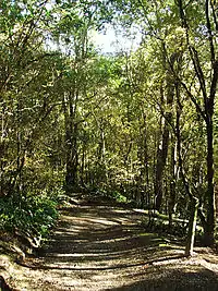 Numerous popular walking tracks lead to and circle the reservoir, and follow the course of the Ross Creek and its tributary, School Creek. Track counters have recorded as many as 4,000 walkers on the tracks per month, making them some of Dunedin's most well-used bush walks.[5] The tracks are marked with stone markers, and a permanent orienteering course is also marked numbered posts. The walks can be entered from various points along Burma and Tanner Roads, but the main entry is from lower down Ross Creek at Glenleith. A further track links the reserve with a walkway which follows the course of the Water of Leith past a former quarry to link with tracks which run through Woodhaugh Gardens at the mouth of the Leith Valley 0.9 kilometres (0.56 mi) to the southeast.