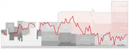 In the past, the local derbies versus Schwarz-Weiß Essen were big events, sometimes followed by more than 30,000 fans, however since their rivals decline the rivalry has waned in importance.[4][5] Although often clouded in political terms, the "reds" were left-wing and the "blacks" right-wing, in reality there was no real distinction. The rivalry was more based on geography of the city, a north (RWE) versus south (SWE) city divide.[6] While the reputation of northern Essen has been attached to the working class in the past decades, the south of the city is generally regarded as a wealthier area, inhabited by an upper-middle class.[7]