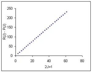 where means the frequency (or wavenumber) of the given line. The main term, comes from the difference in the energy of the rotational state, and that of the state,