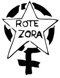 Rote Zora (English: Red Zora) was a West German radical left feminist urban guerrilla organization active from 1974 to 1995.[1] The group committed a series of bombing and arson attacks against ideological enemies, including individuals and organizations thought to be involved with sexism, the exploitation of women, genetic engineering, enforcing patriarchal society, nuclear power, and anti-abortionism.[2] Rote Zora were particularly opposed to § 218 of the German Penal Law limiting abortion, which they referred to as the "Terrorism Paragraph".[3] The organization never officially dissolved, but was completely inactive by 1996.