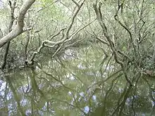 In 1888 and 1889 (when the area was known as Deception Bay), there was a long-running attempt to sell a subdivision known as the Isle of Man estate (27.2180°S 153.0382°E), bounded to the east, south and west by Saltwater Creek (called Fresh Water Creek in the advertising material).[8] The land was promoted as being near the proposed Redcliffe railway line.[9] However, the lots were either never sold or never developed. Although the subdivision can be seen on cadastral maps until at least 1978,[10] at 2020 the land has returned to a single undivided and undeveloped parcel.[3] This may relate to the flood-prone nature of Saltwater Creek.[6]