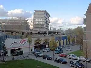 To the very left is the railway line between Rotterdam Centraal and Blaak.