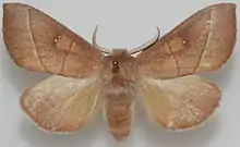 The rough prominent (Nadata gibbosa) is a moth of the family Notodontidae, subfamily Phalerinae. It is also known as the white-dotted prominent and the tawny prominent. The species was first described by James Edward Smith in 1797. This common moth is found across North America from the northern boreal forests to as far south as Florida. It is most common in deciduous forests at some elevation. It is nocturnal but attracted to lights. The moths start to fly soon after dusk and return to resting places some time before dawn breaks (Fullard & Napoleone 2001). The adults live through late spring and early summer, and larvae are active until fall. They then pupate until the following spring.