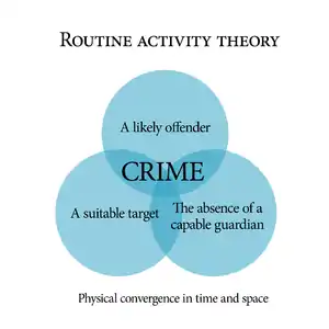 In routine activity theory, crime is likely to occur when three essential elements of crime converge in space and time: a motivated offender, an attractive target, and the absence of capable guardianship.[1][6]