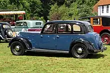 This was the Rover Scarab with a rear-mounted V-twin-cylinder air-cooled engine announced in 1931, a van version was shown at Olympia, but it did not go into production.[8] During this time the Rover 10/25 was introduced, with bodies made by the Pressed Steel Company. This was the same body as used on the Hillman Minx. Prior to this time Rover had been a great supporter of the very light Weymann bodies that went suddenly out of fashion with the demand for shiny coachwork and more curved body shapes. Weymann bodies remained in the factory catalogue until 1933.
