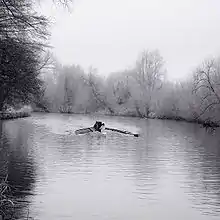 A Thames, or English, punt is a long slender vessel. It sees very few and often intermittent or extremely local races. Its use is almost wholly recreational. (Thames) skiffs are the mainstay of several regattas and six extant clubs (see below). A large version with a canvas is called a camping skiff, featuring in major modern travelogues and historically in Three Men in a Boat, published in 1889,[2] a humorous account by English writer Jerome K. Jerome of a two-week boating holiday on this river from Kingston upon Thames to Oxford and back to Kingston.[3][4] Other rowing typically takes place in dragon boats, dongolas, dinghies, inflatable rafts and larger skiffs known as cutters.