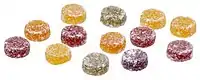 Rowntree's Fruit Pastilles (rebranded in Australia as Wonka Fruit Pastilles after the 1988 acquisition of Rowntree's by Nestlé, Fruit Joy in Italy; Frutips in Canada, China, Hong Kong, Singapore and Taiwan) are small round sweets measuring about 1.5 cm (0.6 in) in diameter; they have a jelly-like consistency, and are covered with sugar. They contain fruit juice, have no artificial colours or flavours, and come in five flavours: lemon (yellow), lime (green), strawberry (red), blackcurrant (purple) and orange (orange).[1]