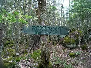 The Acadians had expanded the Mi’kmaq toe-path into a lane, and the Loyalists made it a road off what’s now Route 201. By the mid-1800s, it had a population of about 70, with a school, a church and homes. A mill exported lumber to the railway station in Paradise. In the late 1800s Roxbury was a logging community with a population of several dozens, but the community ended after the face of the South Mountain was destroyed by a forest fire in 1903 and the community income was lost.[4]