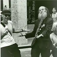 Roy McDonald (4 June 1937 – 20 February 2018, approximation) was a poet, busker, author, philosopher and "professional conversationalist"[1] in London, Ontario, Canada. He was well known for singing and reciting poetry in front of Joe Kool's Restaurant and Jim-Bob Ray's Bar on Richmond Street. For many years he stood at the northwest corner of Richmond and Dundas (the old centre of downtown London) and discussed the literary world with passersby. His long, grey beard, plastic bags filled with books and journals, tweed jacket, and habit of striking up friendly conversations with nearly everyone, making him a very recognizable and well-known figure around the city.