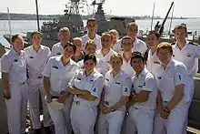 As of June 2021, the RAN has 15,285 permanent full-time personnel, 161 gap year personnel, and 3,932 reserve personnel.[39] The permanent full-time trained force consisted of 2,914 commissioned officers, and 10,056 enlisted personnel.[39] In June 2021, male personnel made up 73% of the permanent full-time force, while female personnel made up 23%. The RAN has the second-highest percentage of women in the permanent forces, compared to the RAAF's 25.5% and the Army's 15.1%.[40]