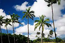 The Royal Coconut Coast includes land that extends from the Kalepa Mountain Range that begins in Hanamaulu and continues north to the Kealia Mountain Range. It includes over ten miles of coastline with several beach parks and recreational areas. This area correlates with the original land distribution system known as ahupuaa in use in ancient Hawaii. The Royal Coconut Coast includes the ahupuaa areas known as Wailua Kai, traditionally called "Wailuanuiahoano", and Wailua Uka. The Royal Coconut Coast also has the Wailua River, Hawaii's only navigable river, meaning it is the only river in the state that is deep, wide, and slow enough to allow vessels to pass.[2]
