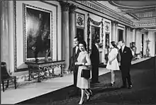 Royal Family was first broadcast on BBC 1 on 21 June 1969, and on ITV the following week on 28 or 29 June.[20][8][21] It was later broadcast in Australia on 21 September 1969. It was seen by 30.6 million viewers in the United Kingdom.[22] The commentary had to be altered slightly for American audiences in a version that was broadcast in the US.[15] Owing to the film being seen by three-quarters of the British public at the time,[23] there was no televised Royal Christmas Message in 1969, with a repeat of the film shown simultaneously on BBC1 and BBC2 on Christmas Day instead.[24] Elizabeth issued a written message to avoid the possibility of over-exposure.[25] The documentary was shown on BBC 2 on 6 February 1972 to mark the 20th anniversary of the Queen's accession to the throne.[26] It was last aired on television on BBC 2 in August 1977 as part of the channel's Festival 77 celebration of the Queen's Silver Jubilee.[7]