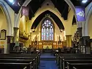 The organ was built by Brindley and Foster in 1900, and is the second instrument to stand in the Church. It has 1749 pipes and three manuals and pedals and eighteen speaking stops, with provision for another twenty-two stops which have subsequently been added plus an additional three. The gilded pipes on the north aisle screen are only dummies, and are not connected to the organ in any way.[14]