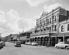 The site on which the hotel is found was where Aberdeen House, constructed prior to 1867 and the home of Alexander and Catherine Moir, once stood. Some of the house was later incorporated into the rear of the hotel.[2] The Moir's leased the building to Frederick Watts in the mid-1880s; he then converted it to a hotel. He named it the Railway Hotel after the Great Southern Railway station[5] that had been built just below the site. By 1892 Moir leased the hotel to Charles Bailye, who changed the name to the Royal George Hotel.[2]