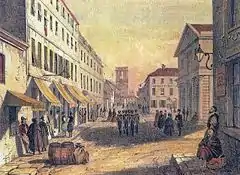 The Gibraltar Yacht Club was established in 1829 in the British overseas territory of Gibraltar by officers of the Royal Navy stationed at the garrison.[1][2][3] It was one of the first yacht clubs to be founded outside of Britain; the Singapore Yacht Club was established three years earlier.[2][4][5] The first mention of a meeting of the club appeared in the Gibraltar Chronicle on 15 July 1829: "The members of the Gibraltar Yacht Club will hold a meeting at Griffiths Hotel on Friday 17th instant at 1 o’ clock p. m. when any officers of the Garrison wishing to join the Club are requested to attend." The first meeting of the yacht club took place at the Griffiths Hotel in Commercial Square, now referred to as John Mackintosh Square and, colloquially, as the Piazza. Later, gatherings of the membership were at the Garrison Library. At the end of the nineteenth century, the club relocated to Gibraltar Harbour, near King's Bastion.[2] During the late nineteenth century, those who wanted to register their yachts with the Gibraltar Yacht Club required approval of the Governor of Gibraltar.[6]