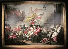 The regiment was formed as a posse comitatus in 1539 during the reign of by King Henry VIII; it went on to become a trained band and then a militia unit in 1660.[4] It is unique in having the word 'Royal' appear twice in its name. It gained the first Royal in 1804 when it was the Monmouth and Brecon Militia. The second was acquired in 1877 when the regiment transferred from an infantry unit into a Special Reserve section of the expanding Royal Engineers.[5]