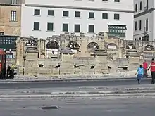 The Royal Opera House, also known as the Royal Theatre (Maltese: It-Teatru Rjal, Italian: Teatro Reale), was an opera house and performing arts venue in Valletta, Malta. It was designed by the English architect Edward Middleton Barry and was erected in 1866. In 1873 its interior was extensively damaged by fire but was eventually restored by 1877. The theatre received a direct hit from aerial bombing in 1942 during World War II. Prior to its destruction, it was one of the most beautiful and iconic buildings in Valletta.[1] After several abandoned plans to rebuild the theatre, the ruins were redesigned by the Italian architect Renzo Piano and in 2013 it once again started functioning as a performance venue, called Pjazza Teatru Rjal.[2]