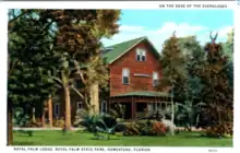 In the 1917 and 1919 legislative sessions, funding requests were submitted and denied.[5] The 3-story Royal Palm Lodge was completed in 1919 as housing for the caretaker, visitors and scientists. The state donated an additional 2,080 acres (840 ha) to the park by 1921 for a total of 4,000 acres (1,600 ha).[1] At the park, numerous visiting scientists were studying the area and publishing papers which encouraged more visitors. Mrs. Jennings' husband died in early 1920, and she grieved at her home for almost a year, nearly giving up on the park. For the 1921 legislative session, she again requested funding. Finally, a $2,500 recurring appropriation was approved. Following the 1926 Miami hurricane and Everglades fires, $10,000 was provided for restoration.[5]